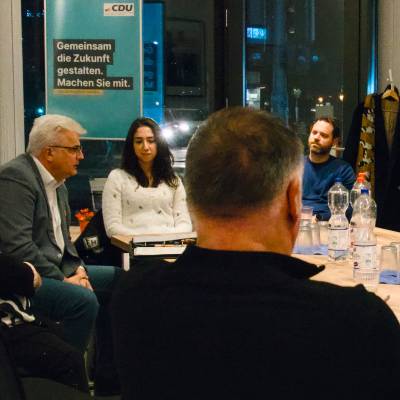 Neujahrsempfang der CDU, CDA und JU Pankow mit CDU-Generalsekretär Mario Czaja (mitte). Zu Gast: Joachim Krüger, CDA-Kreisvorsitzender von Charlottenburg-Wilmersdorf (links im Bild) und Harald Burkart, CDA-Kreisvorsitzender von Pankow (rechts im Bild).