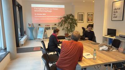 Der ehemalige CDA-Landesvorsitzende Joachim Krüger MdA mit dem Vorsitzenden der Arbeitnehmergruppe im Bundestag Peter Weiß MdB und der stellv. CDA-Kreisvorsitzenden Marion Halten-Bartels.